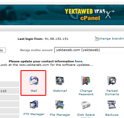 مدیریت ایمیل ها در CPanel: برای تعریف ایمیل جدید برای افراد یا تغییر مشخصات و رمز عبور ایمیل های موجود، به بخش mail وارد شوید و مراحل زیر را ادامه دهید:
